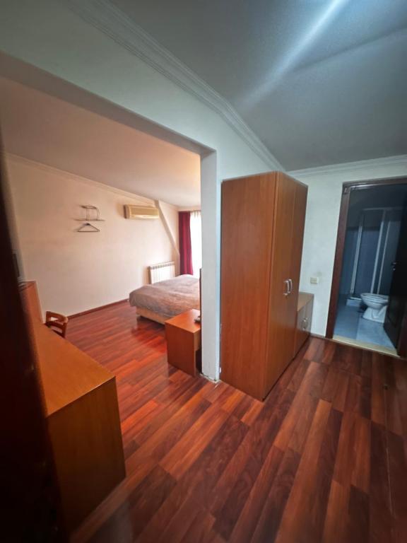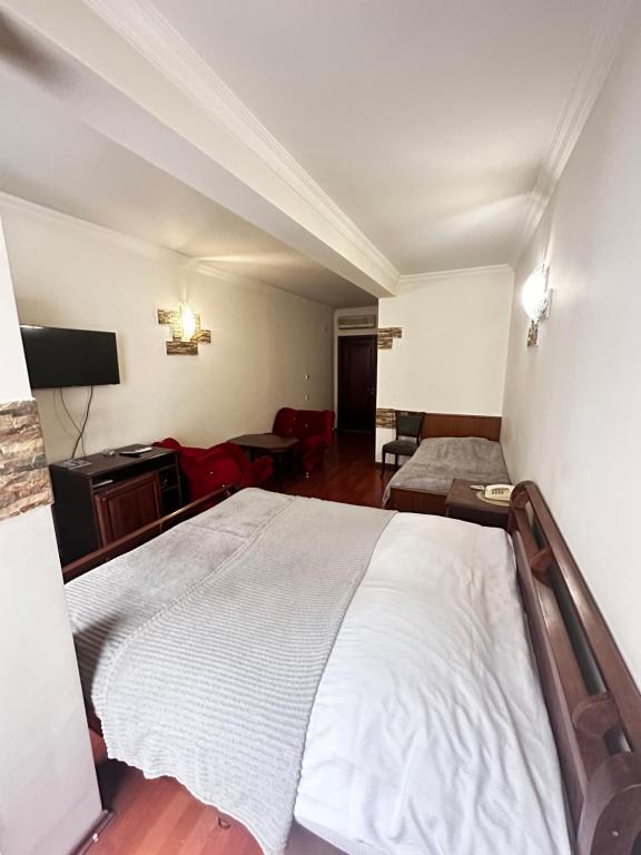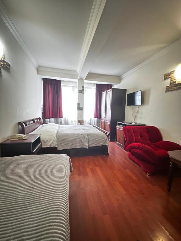 Сегодня в 21.30 вылетаем из Батуми домой. Продлили номер до 18 часов. Что могу сказать об отеле: находится в центре старого города. Здание старое, но отреставрированное снаружи. Внутри тоже не плохо, но мрачновато. Темная, старая мебель, ковролин серый на полу. Убирают номер через два дня на третий. Бутылка воды на человека, чай, кофе, шампунь, кондиционер, гель для душа и еще дают одноразовые зубные щетки. Небольшой холодильник, телевизор, кондиционер. Последний не совсем корректно работает, но я его настроила под себя. Холодильник тоже не работал. Заменили на новый. Есть маленький балкончик с двумя стульчиками, на которых мы сушили купальники и утром пили кофе. Столиками служат приборы от сплит-системы. В ванной протекает потолок ( видимо когда над нами моются), бросали на пол полотенца, спасало. На большой кровати странный матрас, мне было не очень удобно спать. Когда ложишься, будь то проваливаешься в яму, но когда встаешь, яма исчезает️. Постельное белье и полотенца белоснежные. В отеле ест небольшое кафе, но оно не работает, сказали некому работать. Это при их то безработице? Странно. С вечера можно заказать завтрак в номер, континентальный. Поблизости много разных едален, магазинов и сувенирных островков. Море в 10 минутах ходьбы. Все молодые люди, работающие на ресепшене вежливые, услужливые, внимательные. Цена за наш номер была не маленькая, но это объясняется расположением отеля и сезоном. В целом остались довольны.