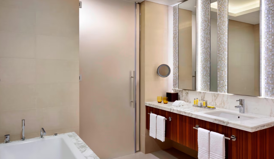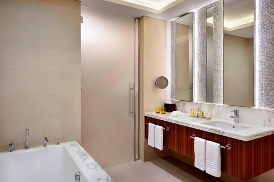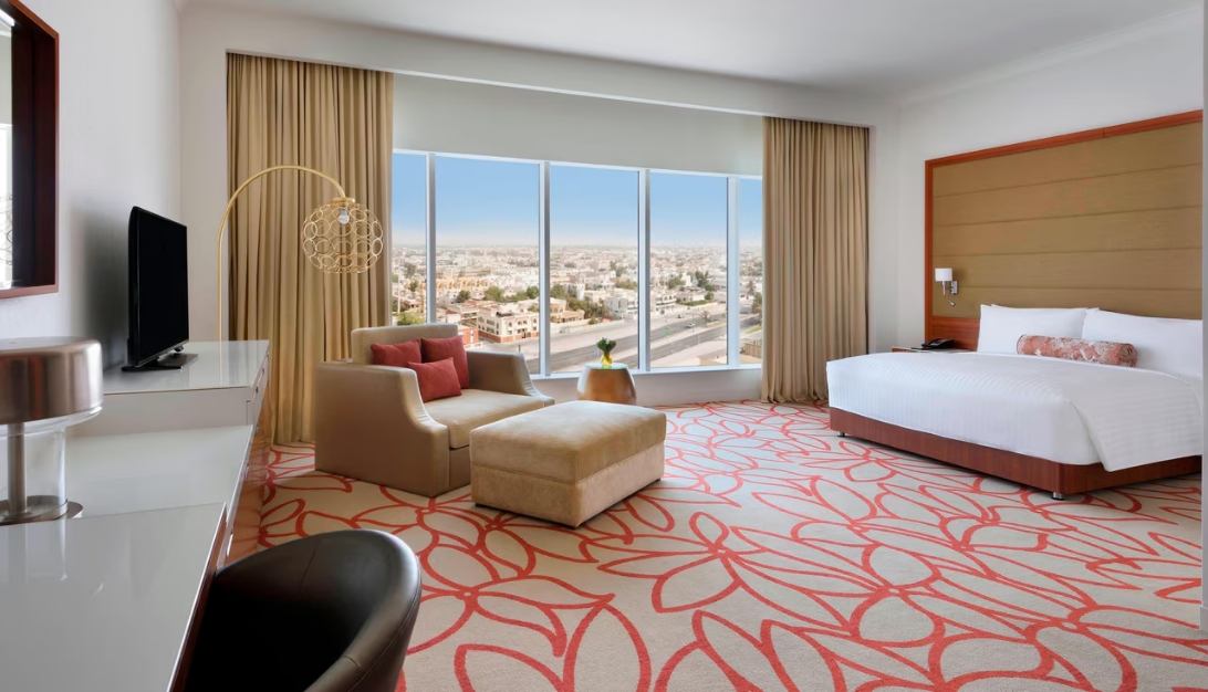 Однокомнатный номер включает двуспальную кровать, письменный стол, кресло. Ванная комната с ванной, душем, биде, феном, туалетными принадлежностями, халатами, тапочками. В удобства включены мини-бар, кондиционер, сейф, телевизор, телефон, утюг и гладильная доска. К услугам гостей доступ в представительский лаундж.